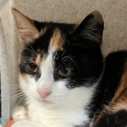 Deze knappe lapjespoes is Sausje. Zij is alweer een tijdje geleden bij ons in pleeg gekomen samen met haar broer Sappie en mama Zoetje.