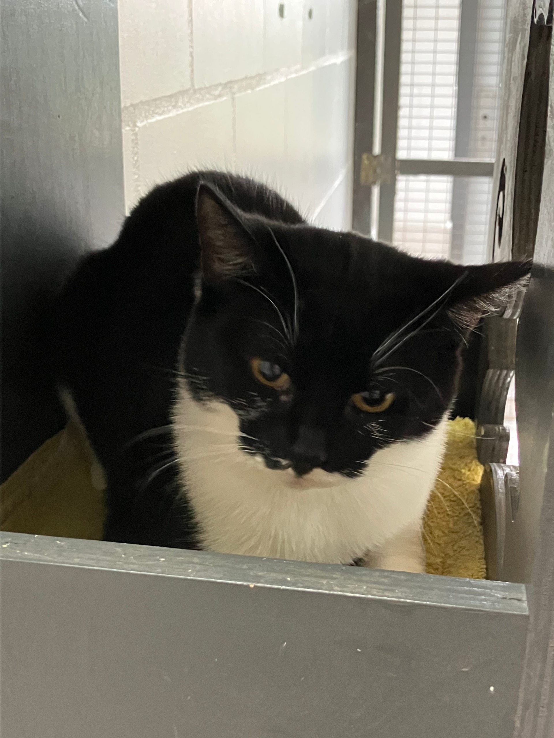 Dit is Gigi. Een jonge zwart witte meid die binnenkort haar eerste verjaardag mag vieren. Haar geschatte geboortedatum is 29 oktober 2024. Wat zou het mooi zijn als ze deze verjaardag bij iemand thuis mag vieren.